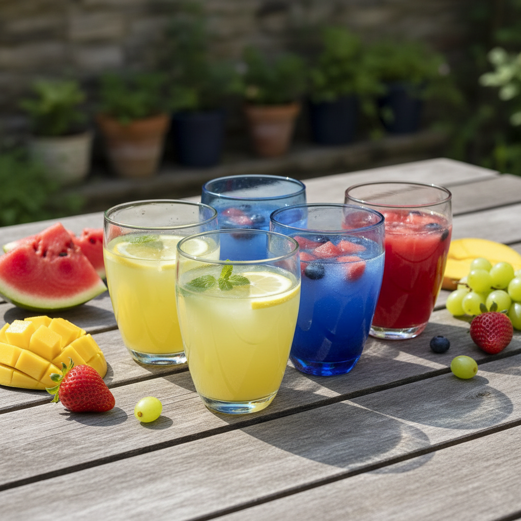 - Dishwasher Safe: Available in clear, green, and blue, with the colour consistent throughout the glass for durability and ease of cleaning.